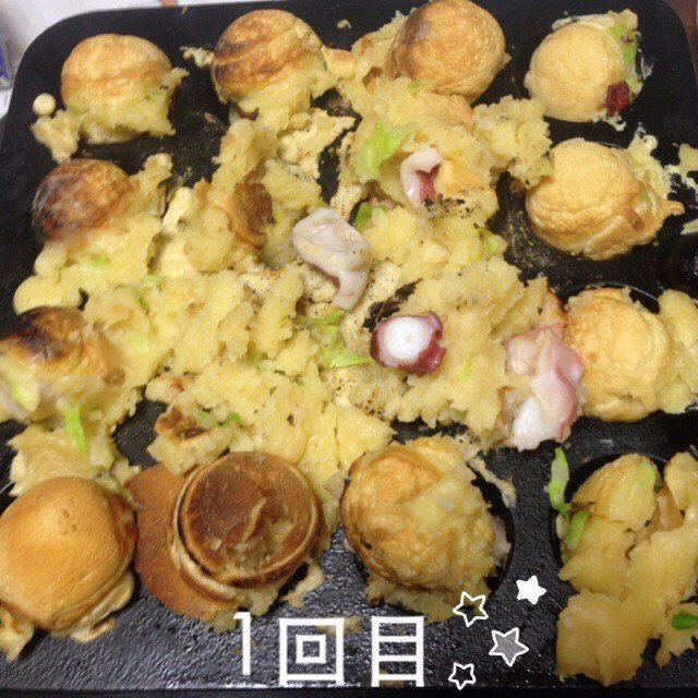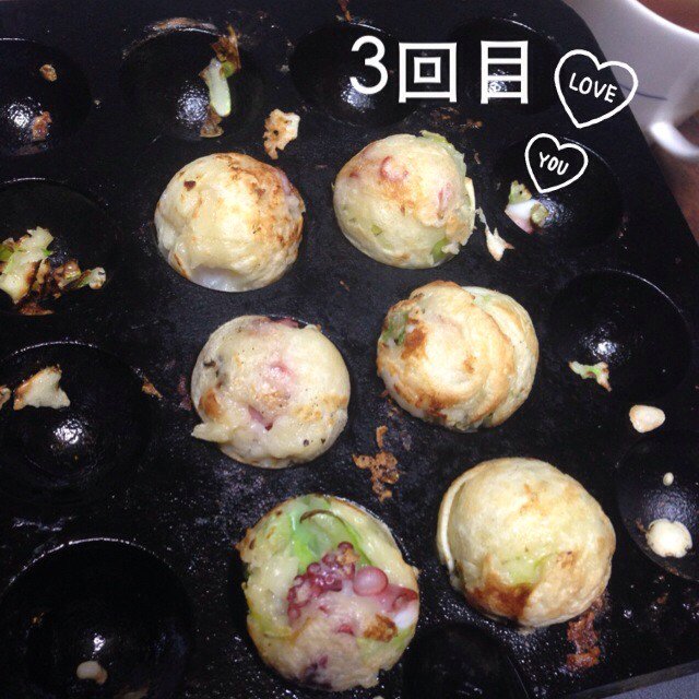 桑原みずき♡MIZUKI@little_mamy_19 -- この前あやと人生で初めてたこ焼き作ったよ✨生地流し入れる係り、タコ係り、キャベツ係り、ネギ係り…ってめっちゃ役割分担してやった💪🍴この上達具合を褒めてください😎 pic.twitter.com/QnDajm0a4o
