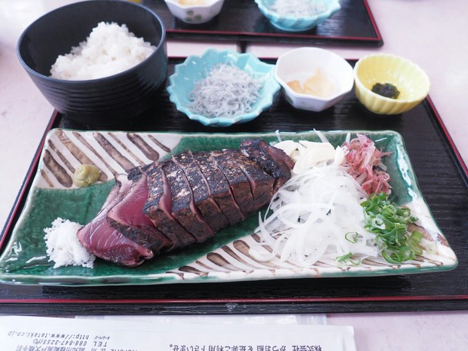 自分で焼いたカツオを定食に乗せて、いただきまーす🍴🐟❤️