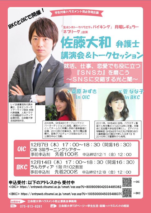 今日は、大阪府にある立命館大学大阪いばらきキャンパス(OIC)で佐藤弁護士と講演会をさせていただきました!
