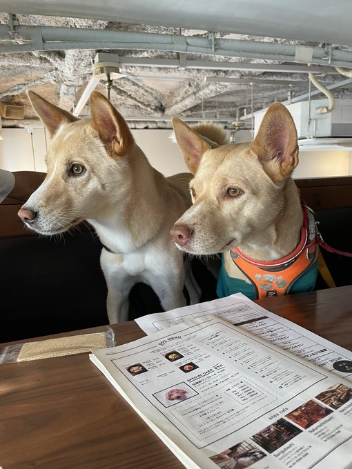 桑原みずき@little_mamy_19 -- おはよう♡ドッグランで遊んだあとのカフェではまったり過ごしてくれてます🐶💓#ともちゃん #トニくん2人とも元保護犬♡中型犬雑種♡ pic.twitter.com/K93bXH0Saq