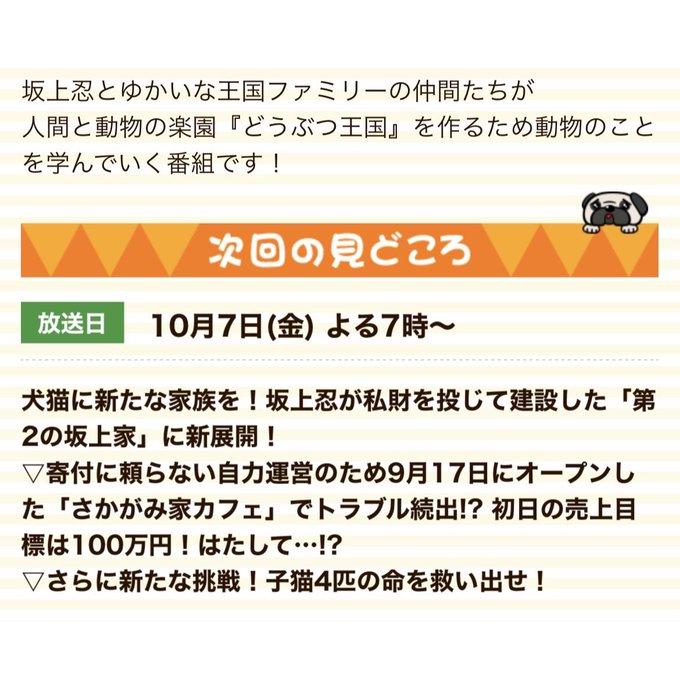 今週10/7(金)は、坂上どうぶつ王国の放送があります❣️✨