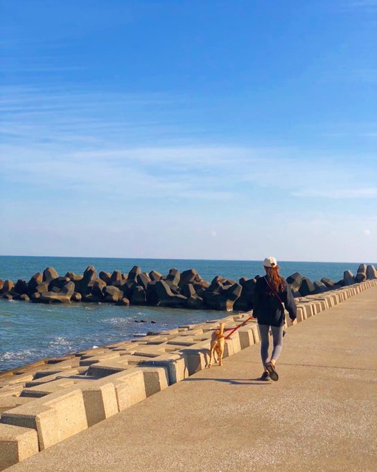 ともちゃんと海の見えるホテルに泊まって、2日目も海をお散歩しました❣️🐾