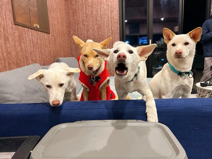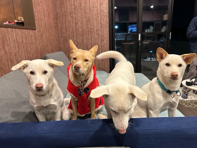桑原みずき@little_mamy_19 -- メリークリスマス❤️サンタさんと雪の妖精みたいで可愛いともちゃんと白トリオ(ポチ・チビ・ナナオ)🥰⛄️❄️🎁#クリスマス #メリークリスマス #保護ハウス #さかがみ家 #xmas pic.twitter.com/k3yDyEFVPc