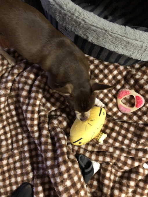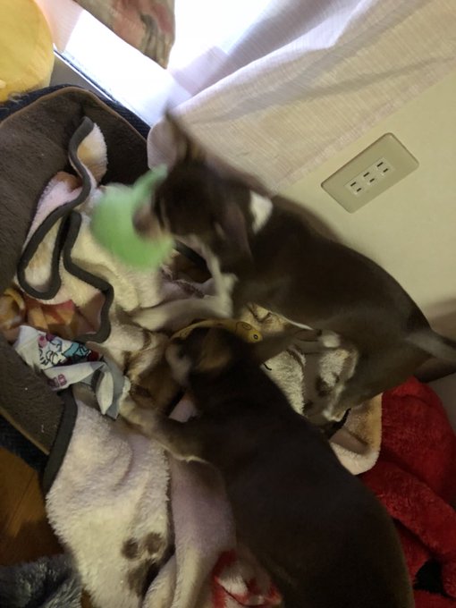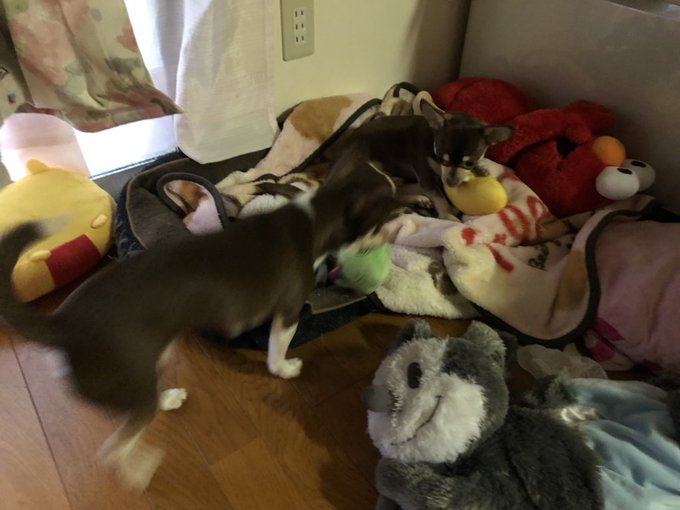 うるさい犬達にミッキー持ってかれそうになったからおジャ魔女のダブってるマジョリカとオヤジーデあげたら、2つあるのにどっちかが持ってる方取り合いして結果うるさかったです。