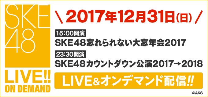 森平莉子@riko_ske48 -- 2017年最後までたのしもうね(∩ᵒ̴̶̷̤⌔ᵒ̴̶̷̤∩)💓明日来れない方は是非DMMで♪♪twitter.com/dmm_lod/status… 【DMM】AKB48グループLOD公式 SKE48名物!「忘れられない大忘年会2017」&「カウントダウン公演2017→2018」の模様を今年も配信させていただきます!この公演を皮切りにSKE48は10周年イヤーに突入!新年と10周年の幕開けをSKE48と一緒に迎えましょう♪bit.ly/2zDO6l8#10周年SKE48 pic.twitter.com/wmNqXx5zL5