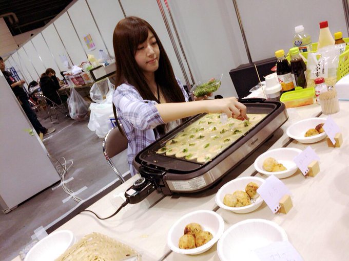 めーちゃんがたこ焼き焼いてるよ🐙♡