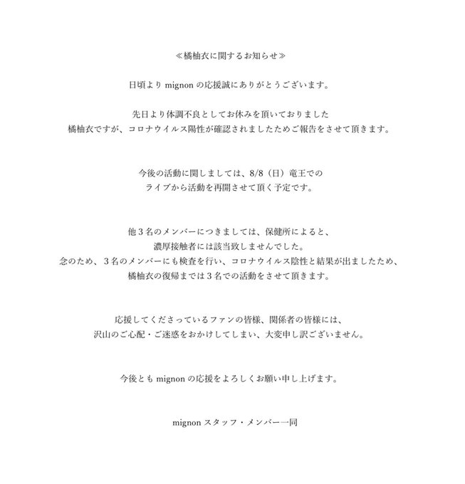 植村 梓@o2o4__azusa -- ゆいが復帰するまで3人で頑張るので皆さんゆいの事一緒におかえり〜!できるまで3人のmignonもよろしくお願いします🥺❣️ twitter.com/officialmignon… mignon official 【橘柚衣に関するお知らせ】 pic.twitter.com/D3RnTDYmXQ