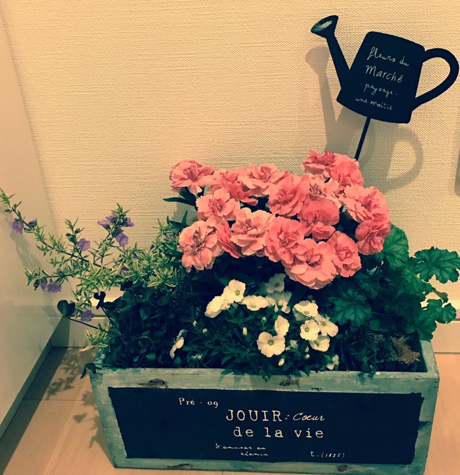今日はね お花屋さんに行って寄せ植え作ってきたの😆 カーネーション沢山あったよ🌸
