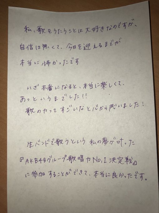 横山結衣@_yokoyuichan_ -- #AKB48歌唱力No1決定戦 #ファイナリストLIVE今日はありがとうございました!!☺️☺️サイコーでしたっ!!!!☺️👍 pic.twitter.com/vxQ8tF3IVx 横山結衣@_yokoyuichan_ -- わぁぁい☺️☺️☺️みんなはなまるひゃくてん☺️ #ファイナリストLIVE pic.twitter.com/FhenFyHD0b