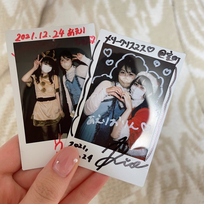 横島亜衿@_aeri_yokoshima -- マブダチ莉央ちゃんと可愛い推しれなぴとチェキ撮ってもらっちゃった😽❤︎(実はれなぴと撮るの2回目✌️) pic.twitter.com/TlB0bEYSaL