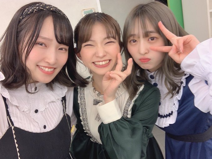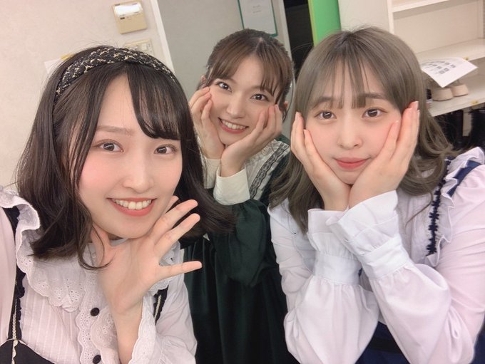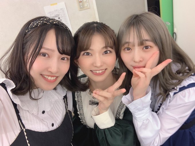 ワクワクだね。可愛いでしょ3人娘。へ?かわいいでしょ?ねえ、かわいいよね?1日だけ顔と衣装違和感…とか思ってても言わないでね!笑笑