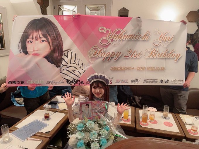 横道侑里@sideroad_lily 横断幕とお花とあとプレゼントもお手紙もたくさん…!