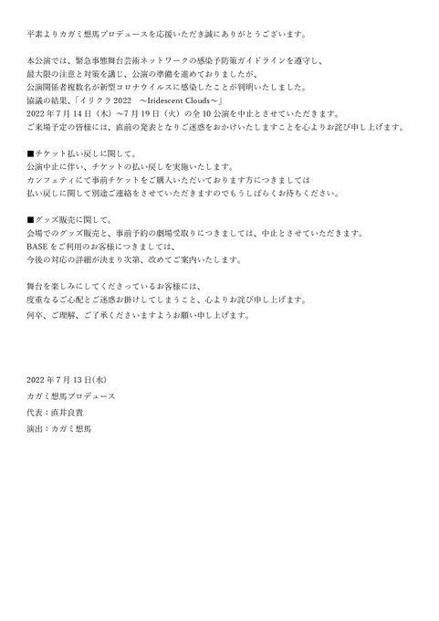 この座組で作り上げてきた #イリクラ2022 は、私の中でいつまでも生き続けるし、誇りです。いつか絶対に届けたい。奇跡を願います。