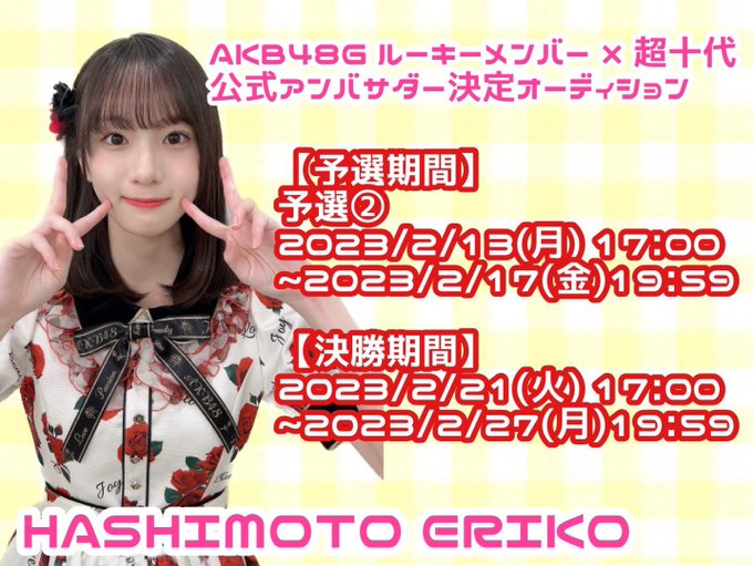 橋本恵理子(AKB48 17期研究生)@erichan_akb48 @chiyori_n512 ちよりさんありがとうございます🥰