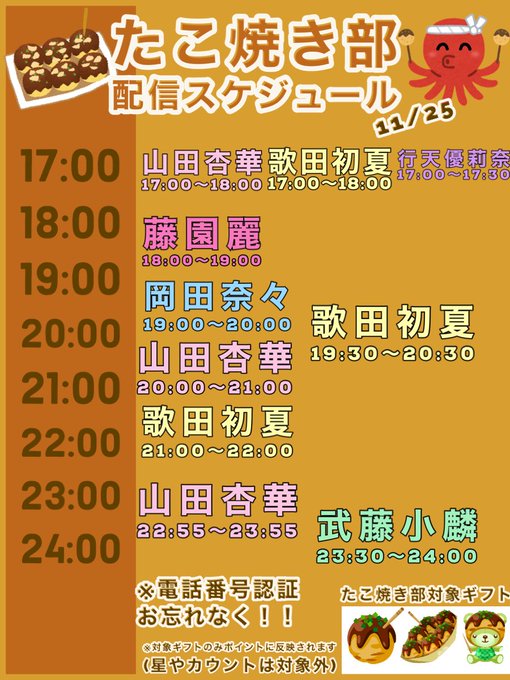 今日の #AKBたこ焼き部 配信スケジュールです🐙