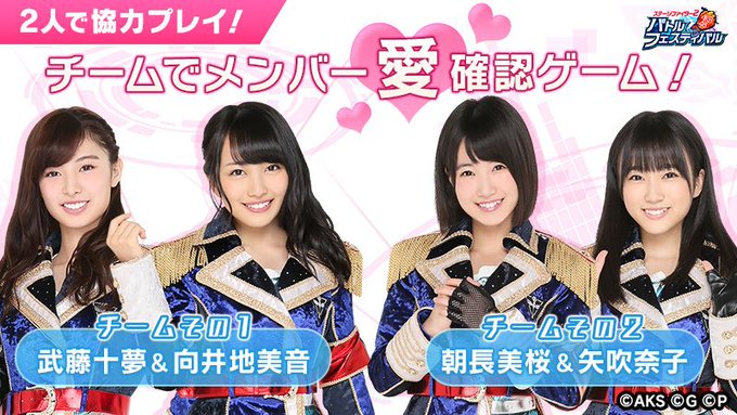 武藤十夢@tommuto1125 -- とむおん♡ twitter.com/akb48_battlefe… バトルフェスティバル ⭐AKB48新作ゲーム!#バトフェス の最新PV公開!⭐向井地美音がMCで登場!『チームでメンバー愛確認ゲーム!』編💨PVはこちら⇒youtube.com/watch?v=BwDMvc…💜出演メンバー💜#武藤十夢 #向井地美音 ペア & #朝長美桜 #矢吹奈子 ペア pic.twitter.com/Pw1K63L4t3