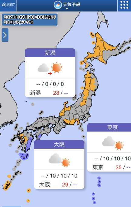 一方、東日本から北日本は日差しが届いて、過ごしやすい体感です☀️🍁