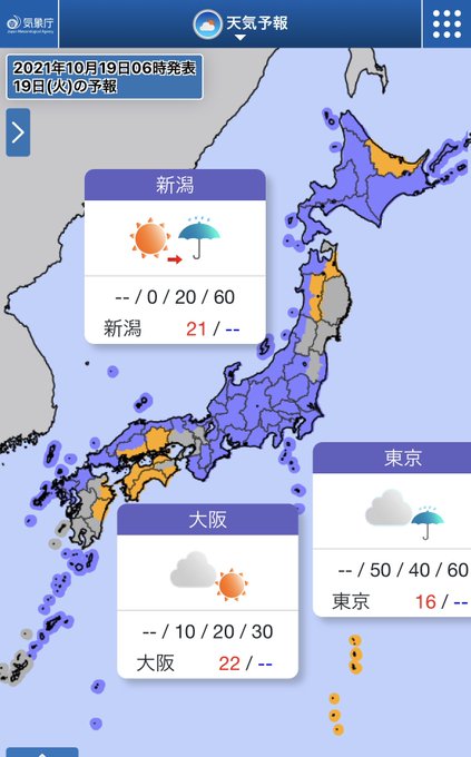 今日(19日)は、全国的に雨が降りやすい天気🌧
