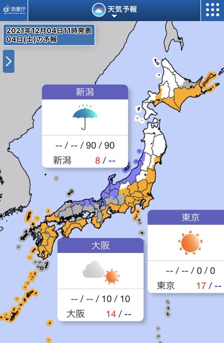 気温は北日本を中心に昨日より低くなりそうです😖