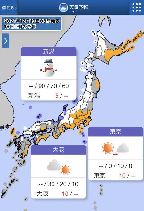 北日本は雨や雪が降り、一時的に強くなる所があるでしょう☂️