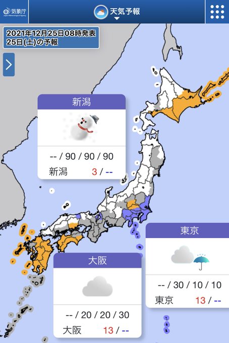 #クリスマス の今日(25日)は、夜にかけて