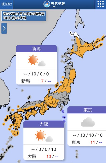 #成人の日 の今日(10日)は、全国的に晴れや曇りの穏やかな天気⛅️