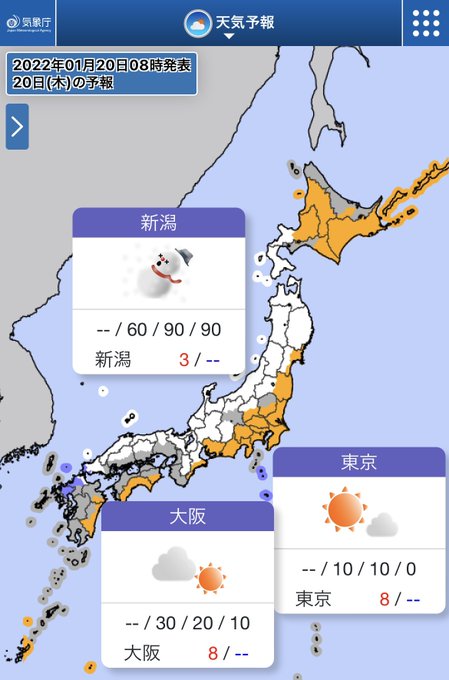 今日(20日)は、全国的に厳しい寒さ😖東北から山陰にかけて強い雪が降るおそれがあります⛄️