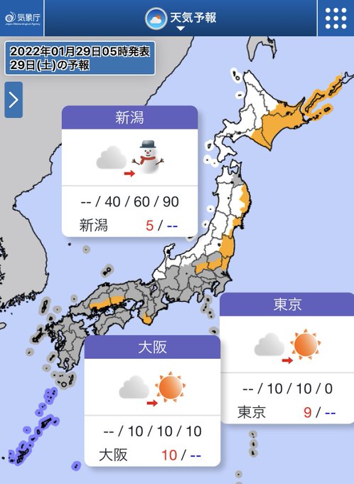 今日(29日)は、太平洋側は晴れや曇りの穏やかな天気⛅️