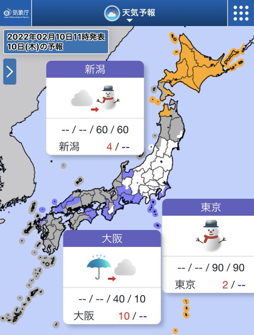 にわか雨やにわか雪のある所も🌂