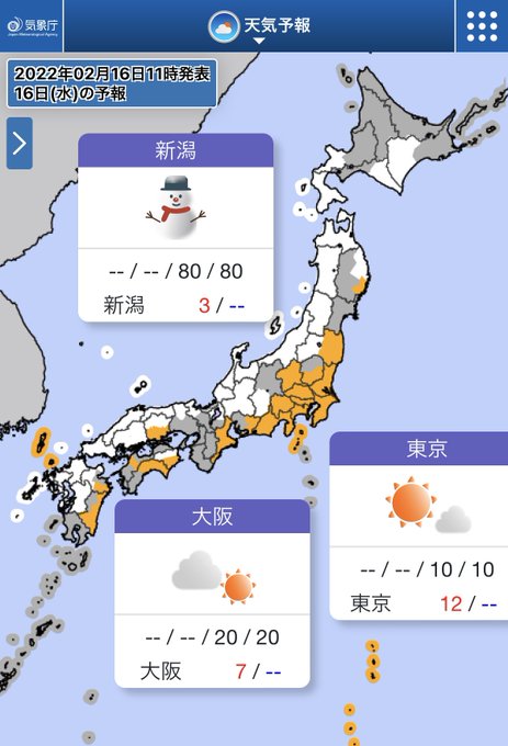 今日(16日)は、日本海側の広い範囲で雪⛄️