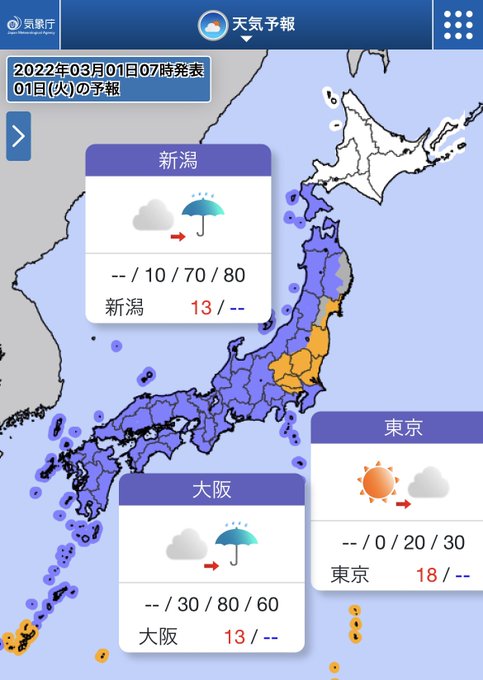 一方、東京は日差しが届いて気温も上がる見込み☀️
