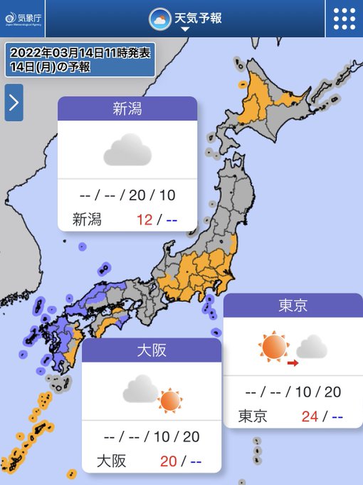 天気は回復する所が多いですが、