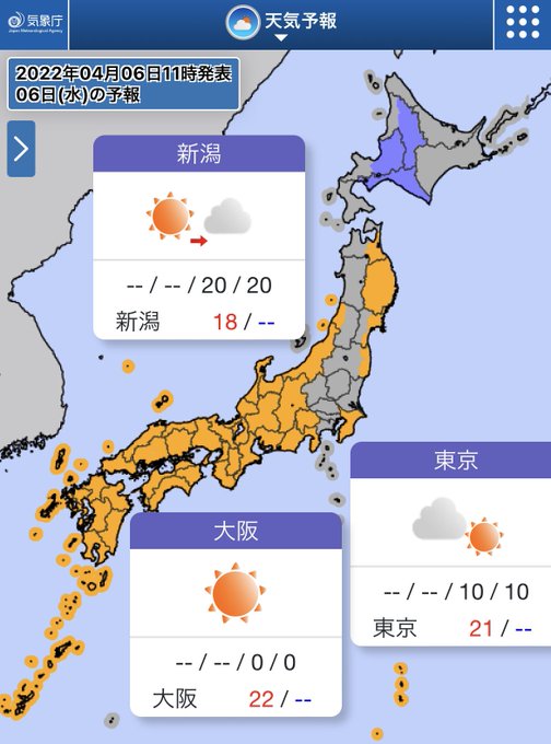 一方北海道は日本海側を中心に雨や雪☂️