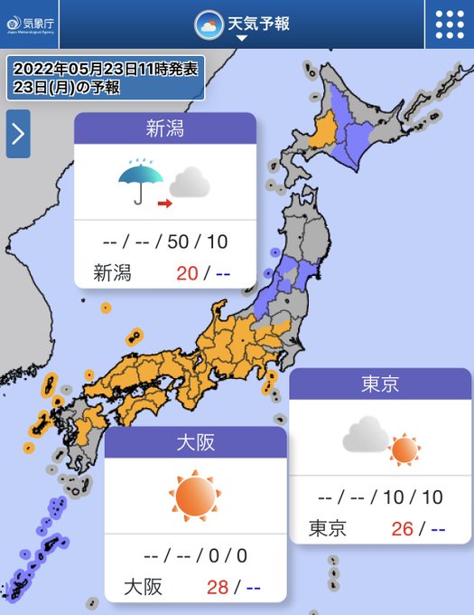 今日(23日)は、西日本や東海は晴れ☀️