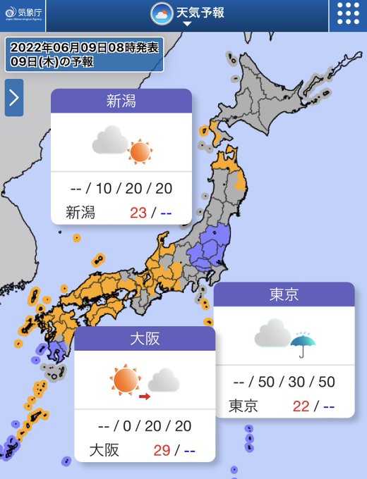 今日(9日)は、東海から西は