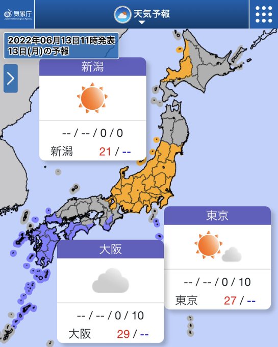 今日(13日)は、沖縄や九州は梅雨空☂️