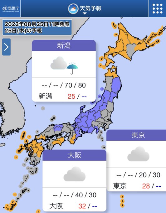 一方、近畿から東北にかけては