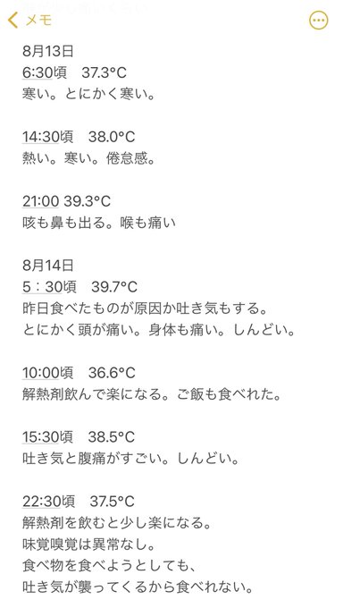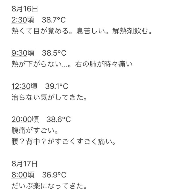 同じ想いを誰にもして欲しくないので療養中の経過観察を載せます。手洗いうがい、マスクの着用などの感染対策をこれからもどうかお気をつけてお過ごし下さい。 pic.twitter.com/0gwMwQDIpm