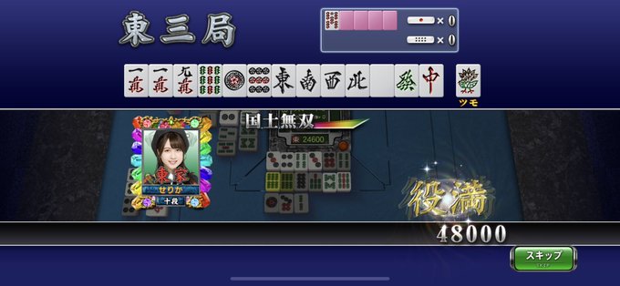 深夜のMJで役満出ました🫶🏻#MJ麻雀 (三麻は役満狙いやすいですね🀄️) pic.twitter.com/k67Ed387Dd