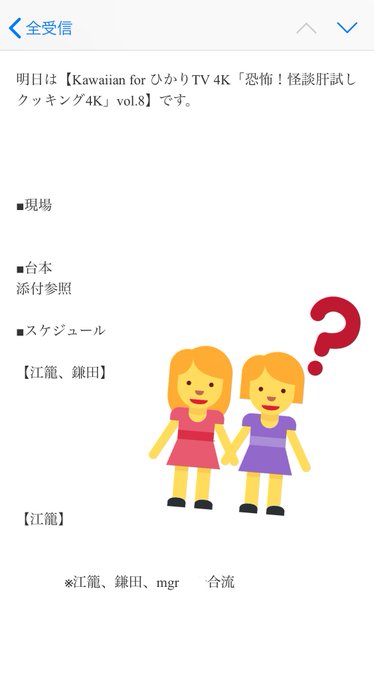 江籠裕奈@egoyuna_329 -- 朝からどんちゃんがなんか言ってる🙄(みてね〜!) twitter.com/ske48_fukushi/… 福士奈央 今夜は、えごぴとなっきぃさんと“Kawaiian for ひかりTV 4K「恐怖!怪談肝試しクッキング4K」vol.8” に出演します👻🍳今日の連絡メール、江籠2人いるけど私ってことでおけ???(ちなみに2個目の江籠が多分私)(いじられてるのかこれは…?)みなさんは間違えないようにしっかり放送見てね😇 pic.twitter.com/SdPWfbGqXv