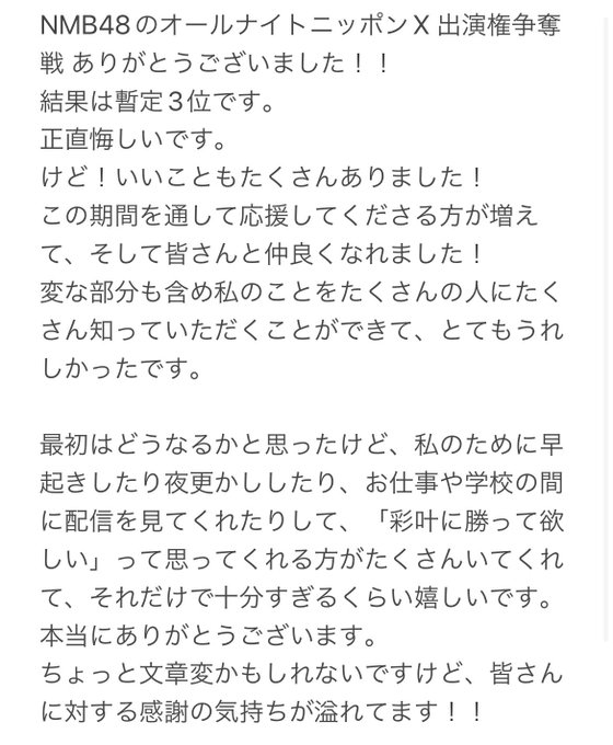 3位悔しい〜!けど!一緒に頑張って下さった皆さんありがとうございました ^._.^ twitter.com/_sakurada_ayak…