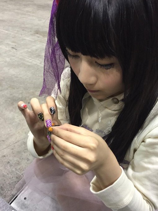 握手会直前、爪のシールネイルを調整中のりなちゃん(∩´∀`∩)♡