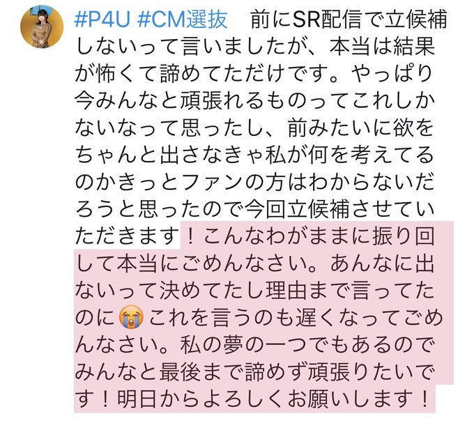 私のわがままです。優柔不断で本当にごめんなさい。 pic.twitter.com/YQ2MCKdA9u