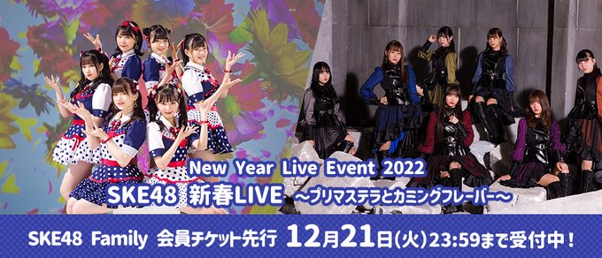 浅井裕華@ske48_yuka -- みなさん!こちらのファンクラブ先行受付が明日の23:59までになります!🥺プリマステラと一緒に思い出作ろう(^^)♪ twitter.com/ske48staff/sta… SKE48 Family (SKE48公式ファンクラブ) Familyの皆さん!!#プリマステラ と #カミングフレーバー の出演イベント「New Year Live Event 2022 SKE48 新春LIVE~プリマステラとカミングフレーバー~」のSKE48 Family先行(抽選)がスタートいたしました!!<受付期間>2021年12月18日(土)14:00~12月21日(火)23:59ske48family.com/news/detail/39… pic.twitter.com/N3GDoeopyj
