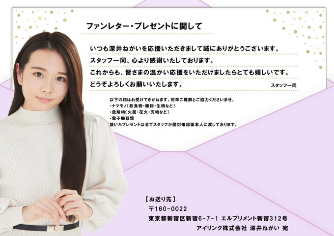 お手紙やプレゼントはアイリンク株式会社によろしくお願いします🙇♀️ pic.twitter.com/pRHx9IgKPS