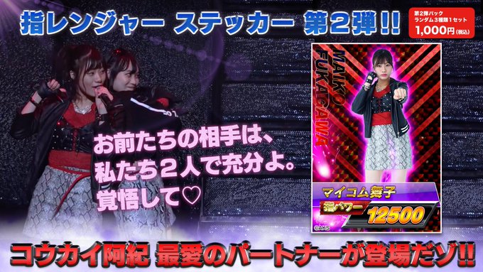 深川 舞子@maiko56_0705hkt -- 立ち寄ってくれないとぉ〜君たちのことぉ〜けちょんけちょんにしちゃうぞっ❤️(マイコム舞子Voice) twitter.com/yubi_ranger48/… 【公式】寸劇戦隊 指レンジャー 【明日】11月25日(月)14時から博多座にて「指レンジャー ステッカー」を販売いたします‼️チケットをお持ちでない方もご購入可能ですので、ぜひお立ち寄り下さい🙇♂️#指レンジャー#極悪同好会#深川舞子詳しくはコチラ👇 hkt48.jp/news/2019/11/6… pic.twitter.com/caeuUZNlSC 豊永 阿紀@aki_toyonaga -- @maiko56_0705hkt 着ボイス欲しい 深川 舞子@maiko56_0705hkt -- @aki_toyonaga 誰得😂