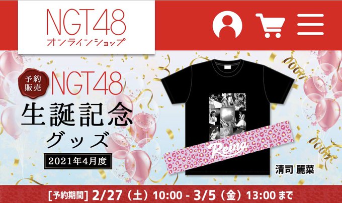 清司麗菜(せいじれいな)@official_seiji -- 生誕グッズの予約受付が今日の13時までとなっています!!記念すべき"20歳"の生誕グッズ是非ゲットしてください💗✨ twitter.com/official_seiji… 清司麗菜(せいじれいな) おはようございます☀本日10時〜予約受付が開始される『2021年生誕Tグッズ』『プロデュース生写真』生誕Tシャツは今までの生誕の写真を寄せ集めたデザインです✨タオルは…😂是非ゲットしてください!!♡shop.ngt48.jp pic.twitter.com/B4uEHfu9Qv