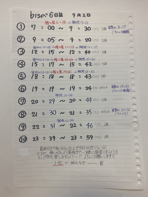 9月2日タイムテーブルです!