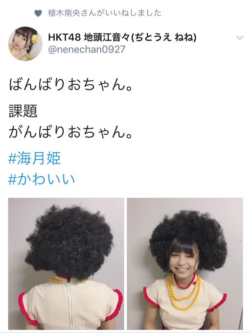 HKT48 地頭江音々(ぢとうえ ねね)@nenechan0927 解凍された植木さんからさっそくいいねいただきました!