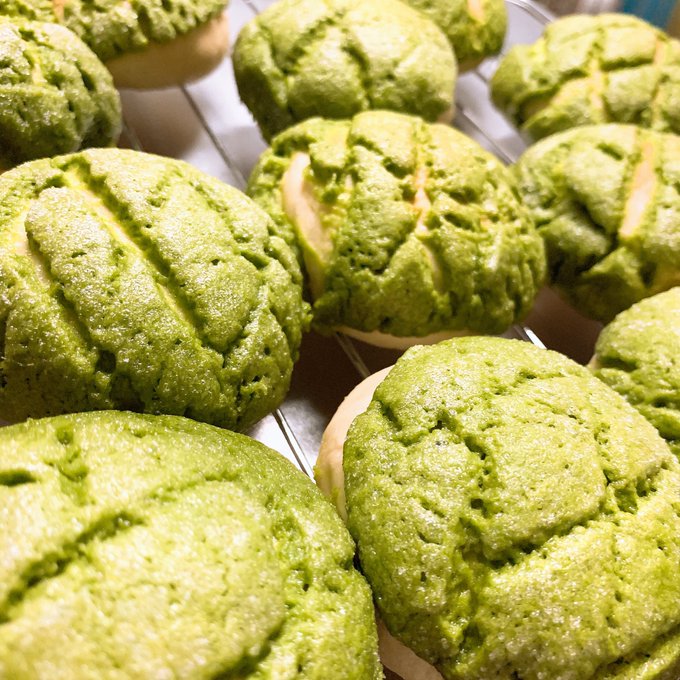 抹茶メロンパン焼きました🍵︎💕︎